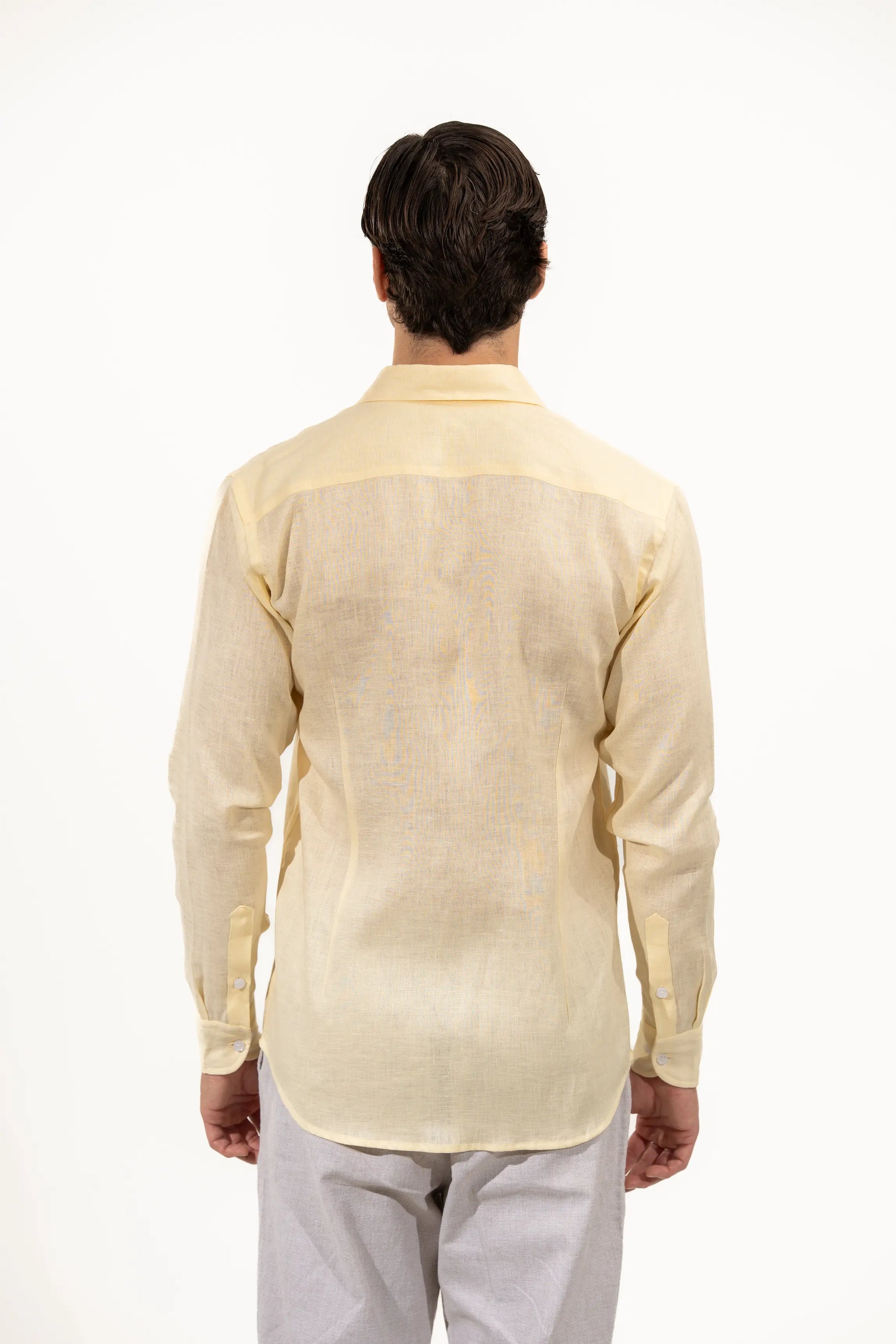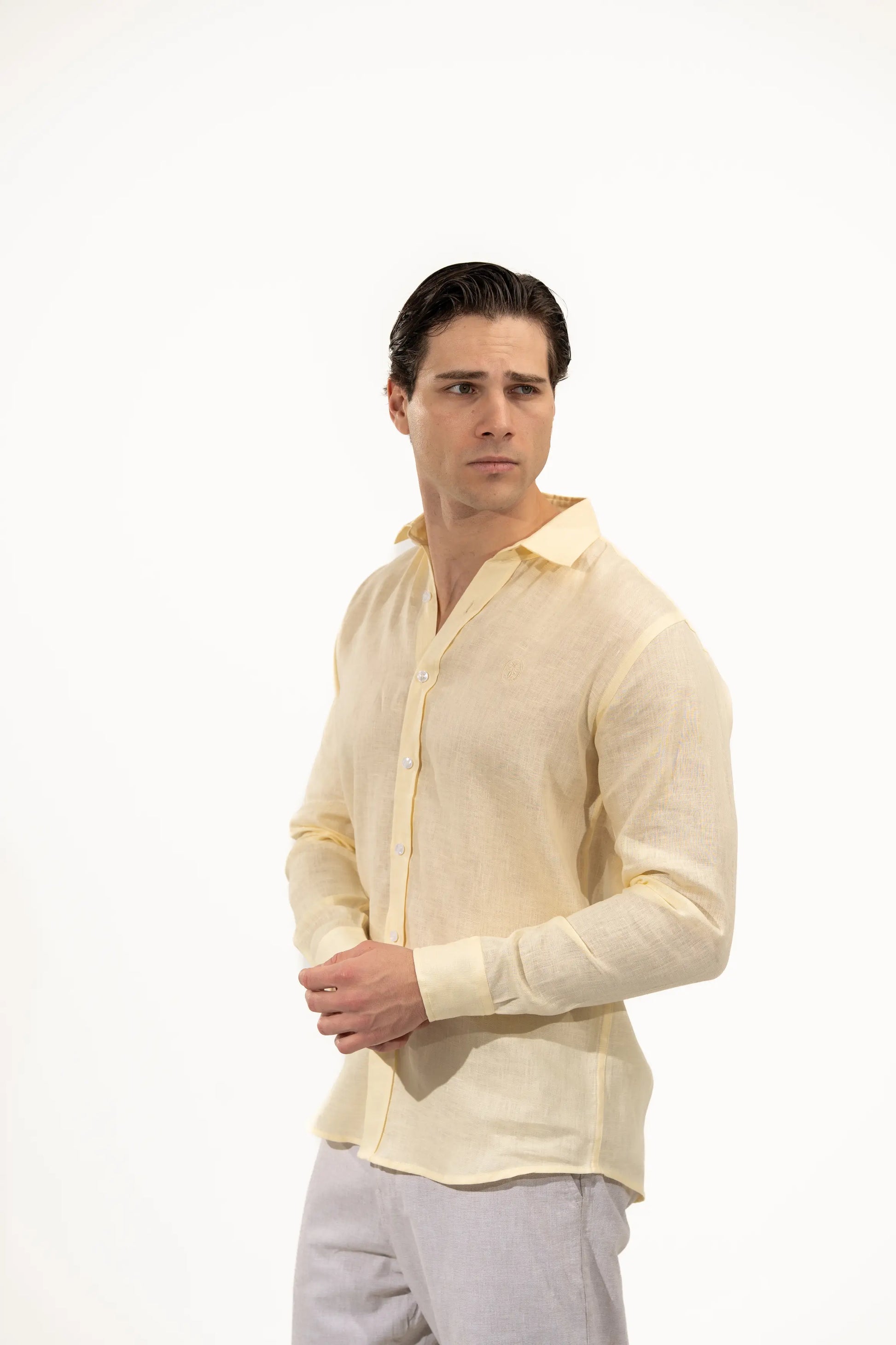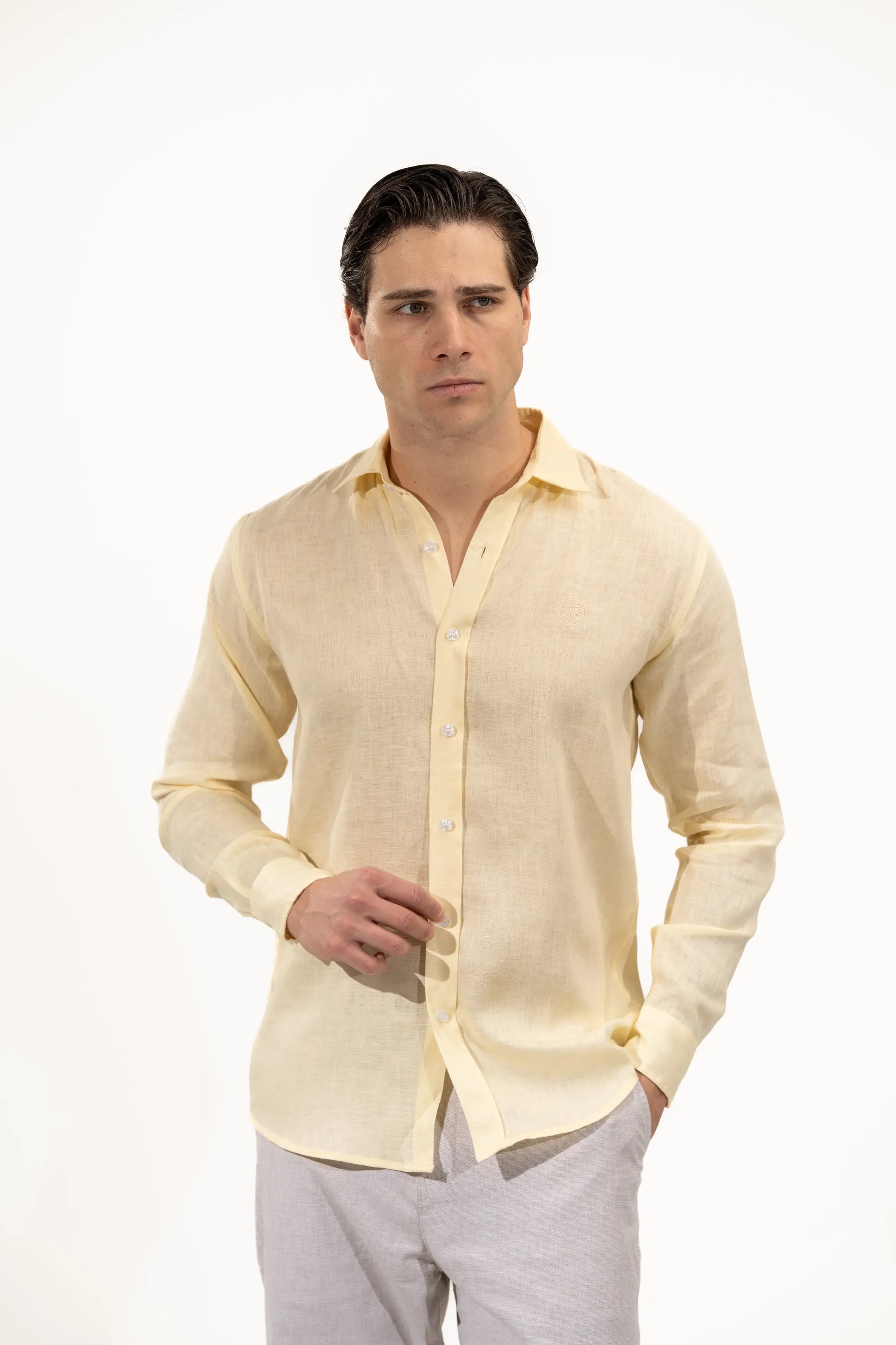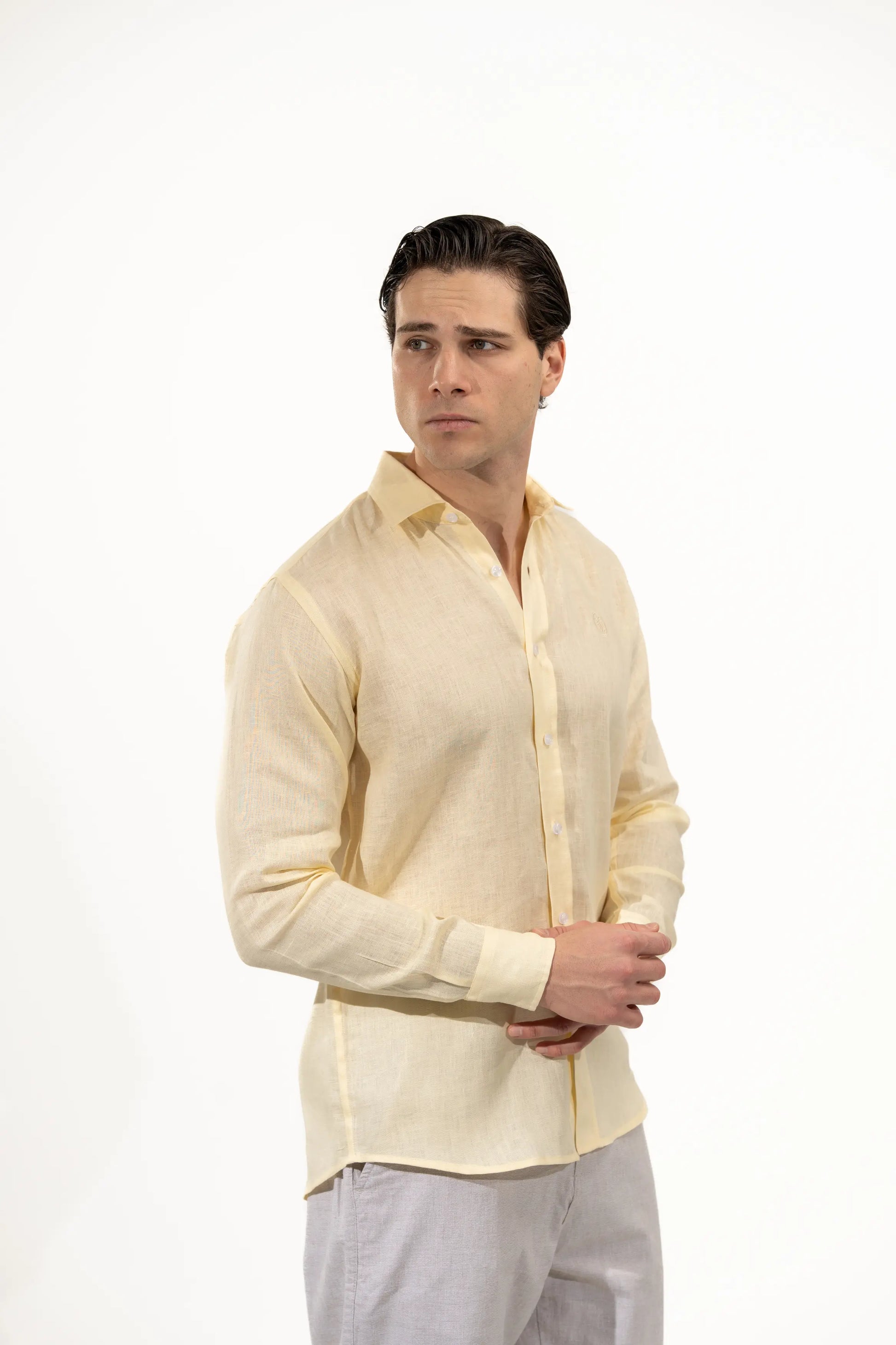 Regular Fit Long Sleeve Yellow Linen Blend Men's Shirt